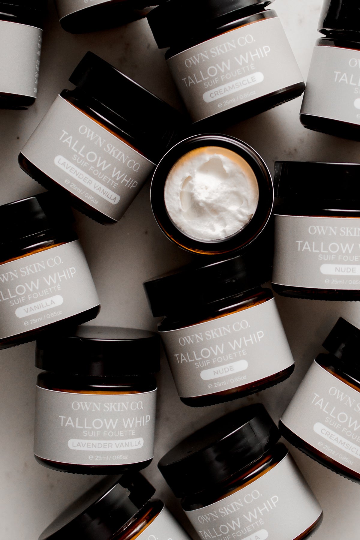 Own Skin Co. was born out of necessity—the exhausting struggle to find genuinely clean products, free of seed oils, that actually delivered results. Our journey became a passionate hunt for the purest ingredients, and that search led us to the rich, naturally biocompatible goodness of grass-fed AND finished Beef Tallow.