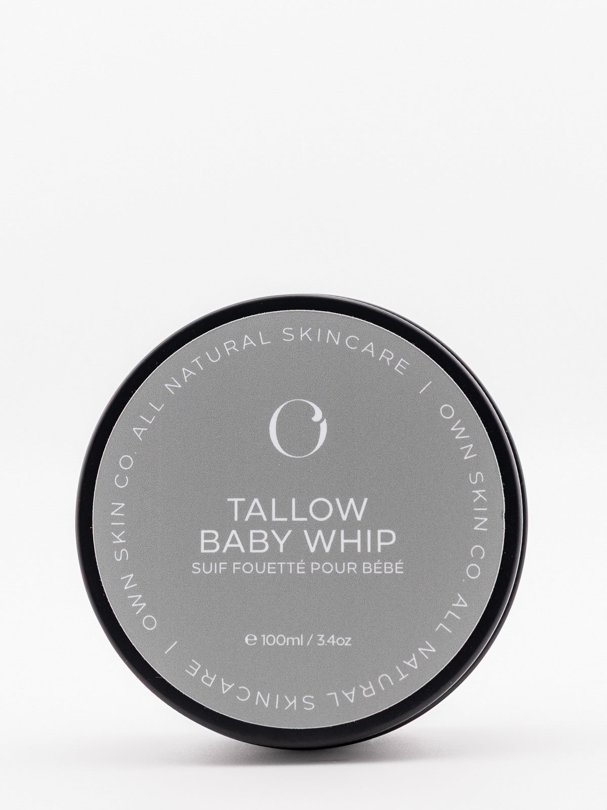 Our Baby Whip & Balm are formulated with olive oil, so there is no worry about baby putting their skin, hands and feet in their mouth. The ingredients are simple, but jam-packed with goodness for the littlest of tallow fans. Our baby tallow whip & balm are meant to simplify and replace all other brand baby creams and lotions (most of which are full of nasties).