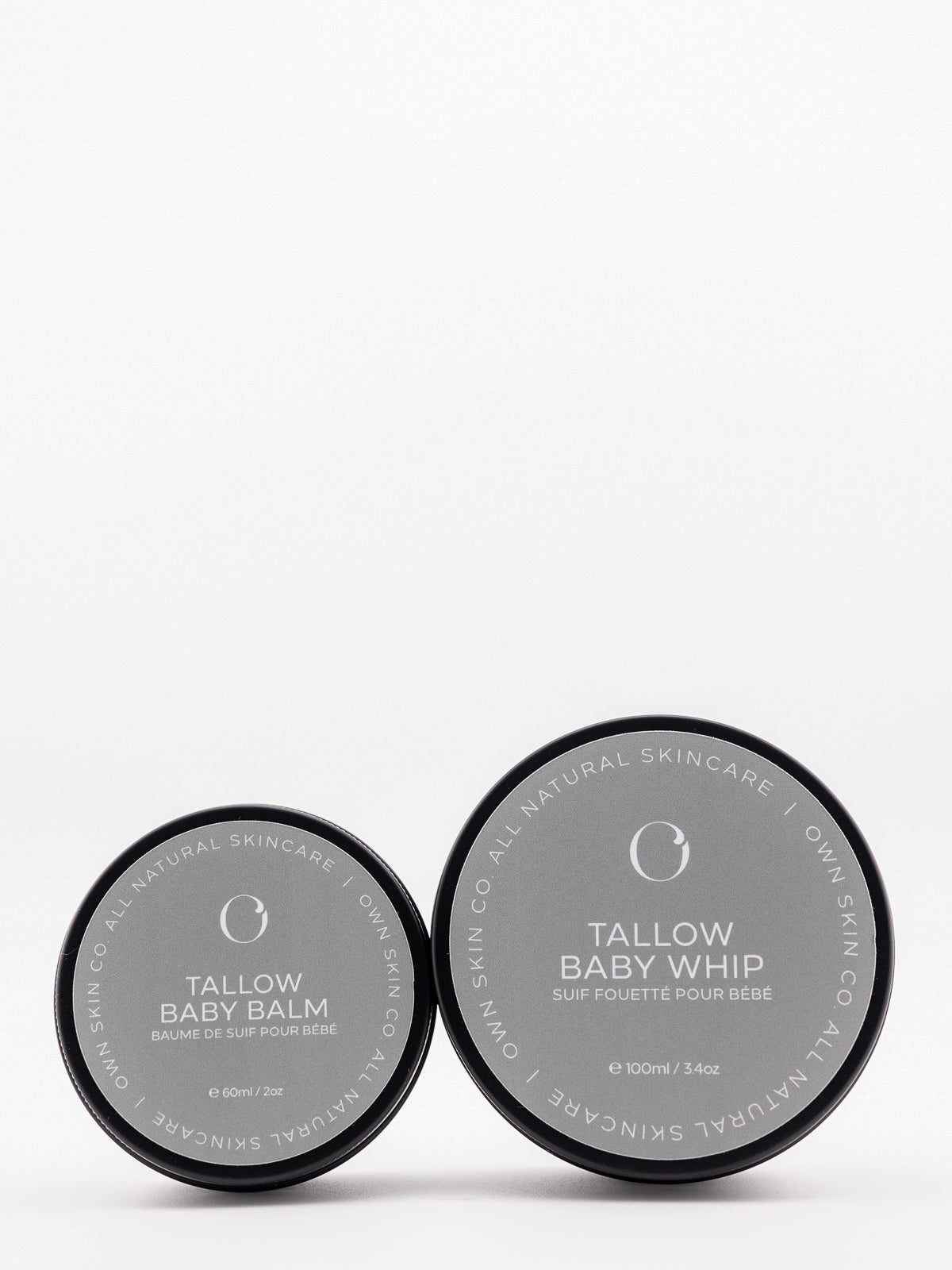 The baby tallow balm is a much more concentrated formula for baby's bum, diaper rash and dry & itchy skin patches that need a little extra moisturizing.