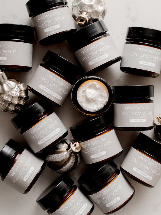 OWN tallow is rendered from 100% grass fed + finished beef suet. Tallow is deeply nourishing to skin, making it an amazing moisturizer. It contains many beneficial vitamins (A, D, K, E, + B12) and minerals. Tallow is similar to skin's natural sebum, making it superior to other oils and moisturizing agents. It helps repair damaged skin, improve dry skin, protect your skin and regenerate your skin for healthy, youthful + glowing skin. Tallow is known for it's amazing healing properties for eczema prone skin, dry patches, minor scrapes, rashes and many other skin ailments. Find more info here.