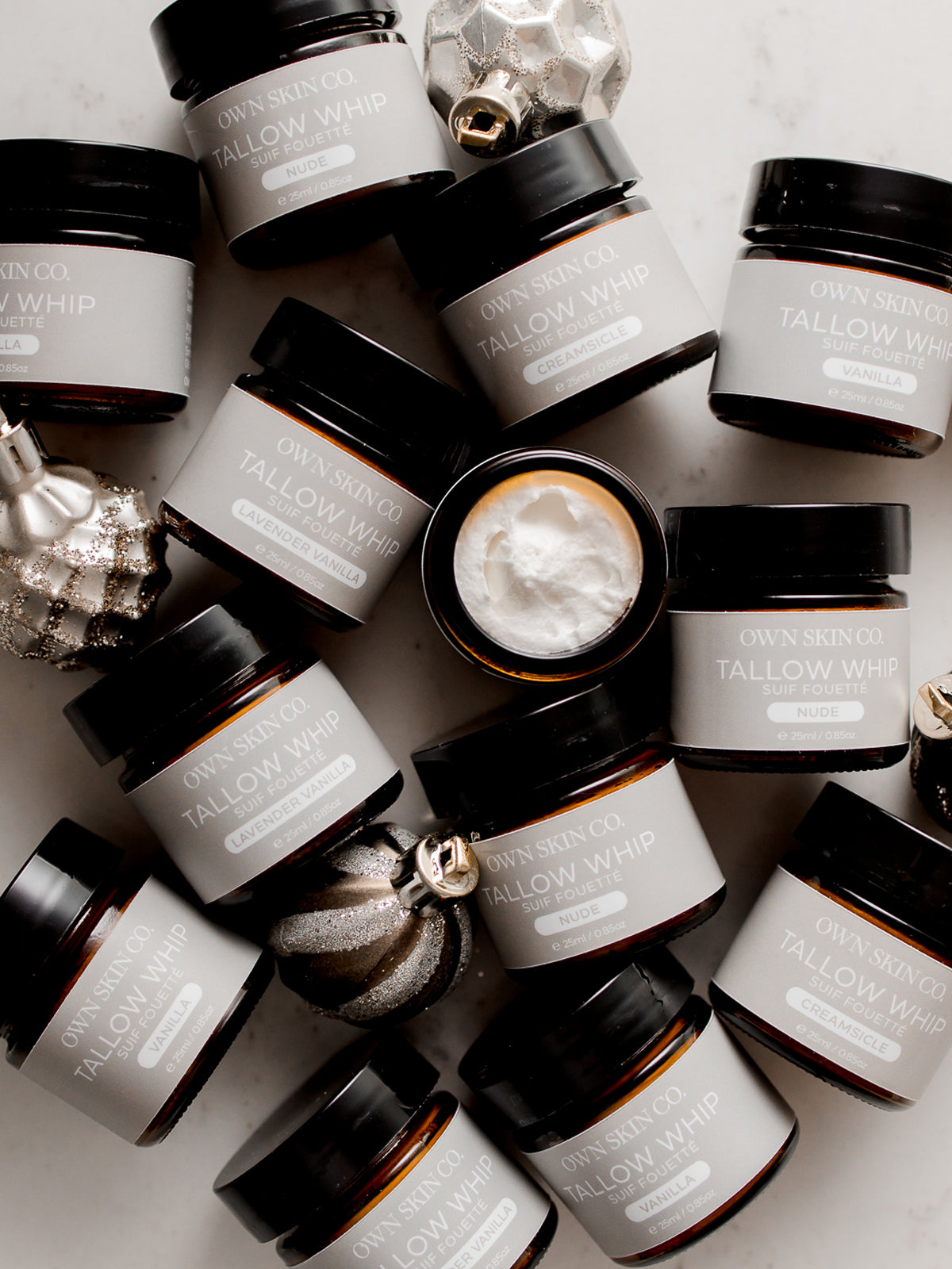 Our Tallow Whip is a luxe whipped moisturizer for face + body. It is a natural nutrient powerhouse for all skin types. It is also soothing to dry + sensitive skin, eczema and other skin ailments.